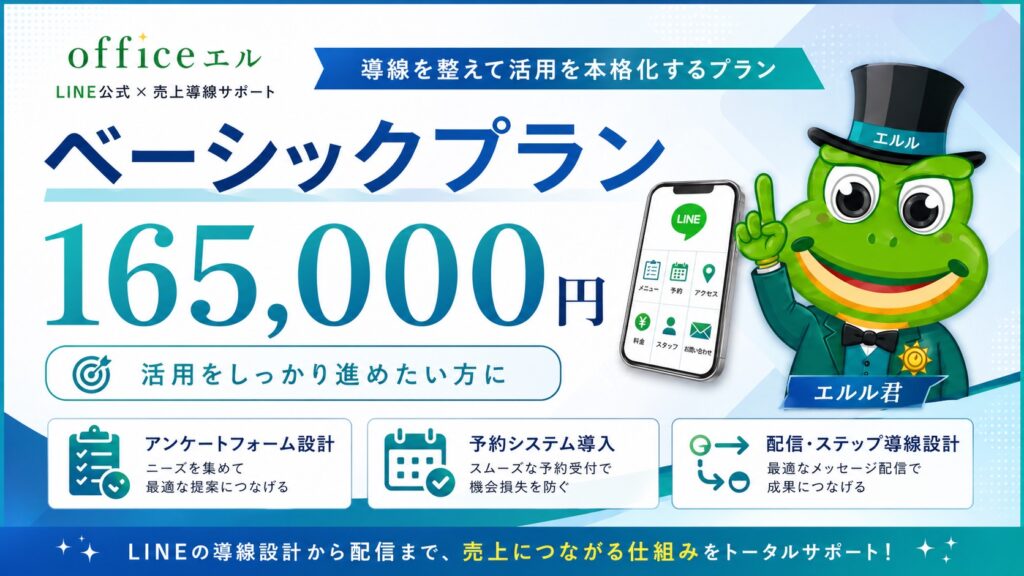 LINEを入口に、問い合わせ・予約・リピート・売上までの流れを整備。「働くLINE」に育てます。